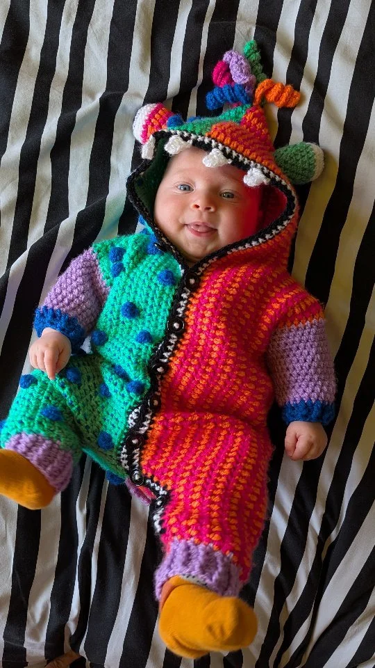 Handmade bright bold pieces designed by me and consciously crafted by you! My work celebrates traditional craftsmanship focusing on Crochet, Knit embroidery and pompoms with a strong love of colour! The brand started life in 2014 as a luxury womenswear label with its ethos being grounded in sustainability, launching at The British Fashion Councils, Estethica under the mentorship of Orsola De Castro (who went on to be one of the co-founders of Fashion Revolution) and went on to win the Selfridges Bright Young Thing award in 2016. Throughout the various set ups of the business since the very beginning we have been a family business- run by myself and my mum, Annie.